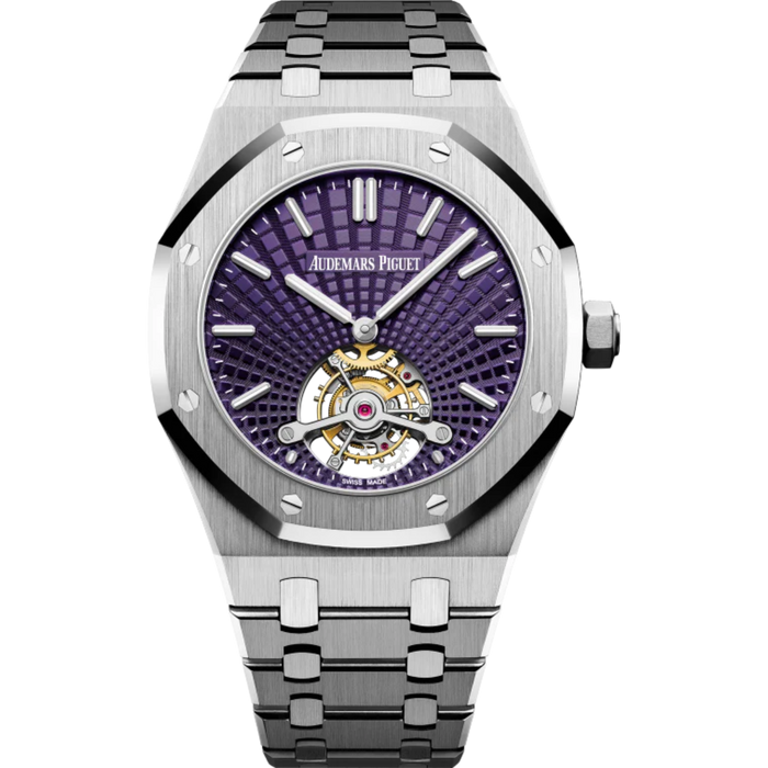 Royal Oak Tourbillon Extra-Thin 41MM Stainless Steel Bracelet Purple Dial With Tapisserie Evolutive Pattern Stainless Steel Case TOURBILLON EXTRA-THIN